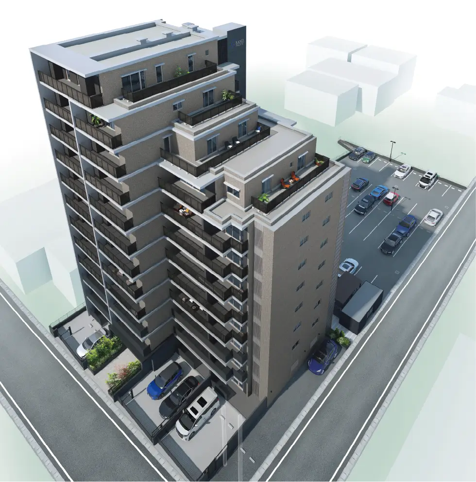 博多区で分譲されているマンションの中で、分譲戸数に対する駐車場台数の比率が最も高いマンションで、お車を2台所有したい方にも対応可能です。