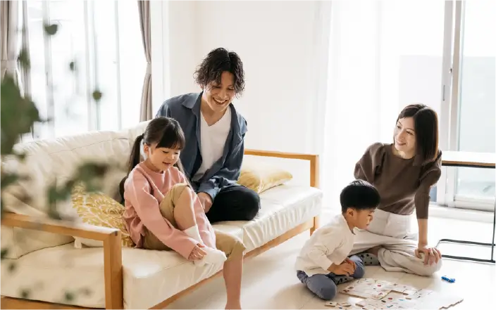 敷地内2台目の駐車場にも対応した平置き駐車場を153%以上確保。住まうご家族のカーライフをサポートします。