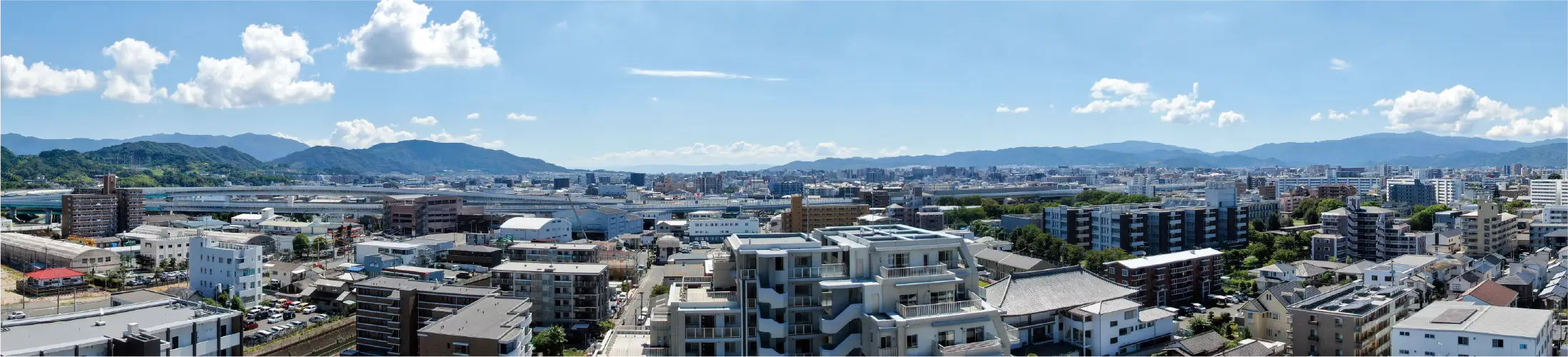 第一種住居地域の住宅街に、ゆとりある敷地面積を確保した「グランドパレス博多板付テラス」。ここに住まう39家族の快適性や機能性を追求し、暮らしの細やかな部分にまでプランを磨き上げています。恵まれた敷地に佇むその姿は、落ち着いた街並みに調和しながらも洗練された存在感でこれからの豊かさを象徴します。